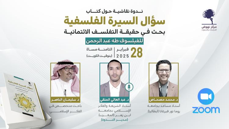 يتشرف مركز نهوض للدراسات والبحوث بدعوتكم لحضور ندوة نقاشية حول كتاب “سؤال السيرة الفلسفية: بحث في حقيقة التفلسف الائتماني” للفيلسوف طه عبد الرحمن، وذلك يوم الجمعة 28 فبراير 2025، الساعة 8 مساءً بتوقيت الكويت، عبر منصة Zoom، وسيتم بث الندوة مباشرة على فيسبوك. يُدير الحوار د. عبد العالي المتقي: أستاذ الشريعة والفكر الاسلامي بجامعة بجامعة […]